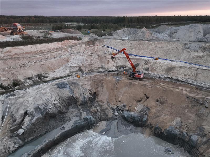 Завдяки гідрогеологічним умовам території, осушення майданчика видобутку є необхідним для ефективної роботи. Вилучена вода спрямовується до спеціального гірничого резервуара в межах концесійного поля C, де вона природним чином інфільтрується назад у поточний майданчик видобутку. Ця система замкненої водної циркуляції є важливою для захисту водних ресурсів та підтримки сталих практик видобутку.